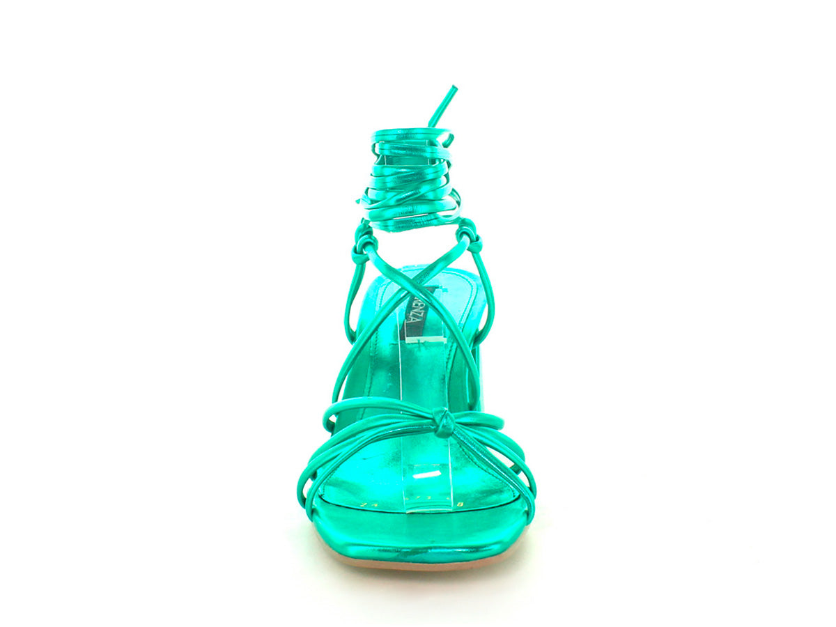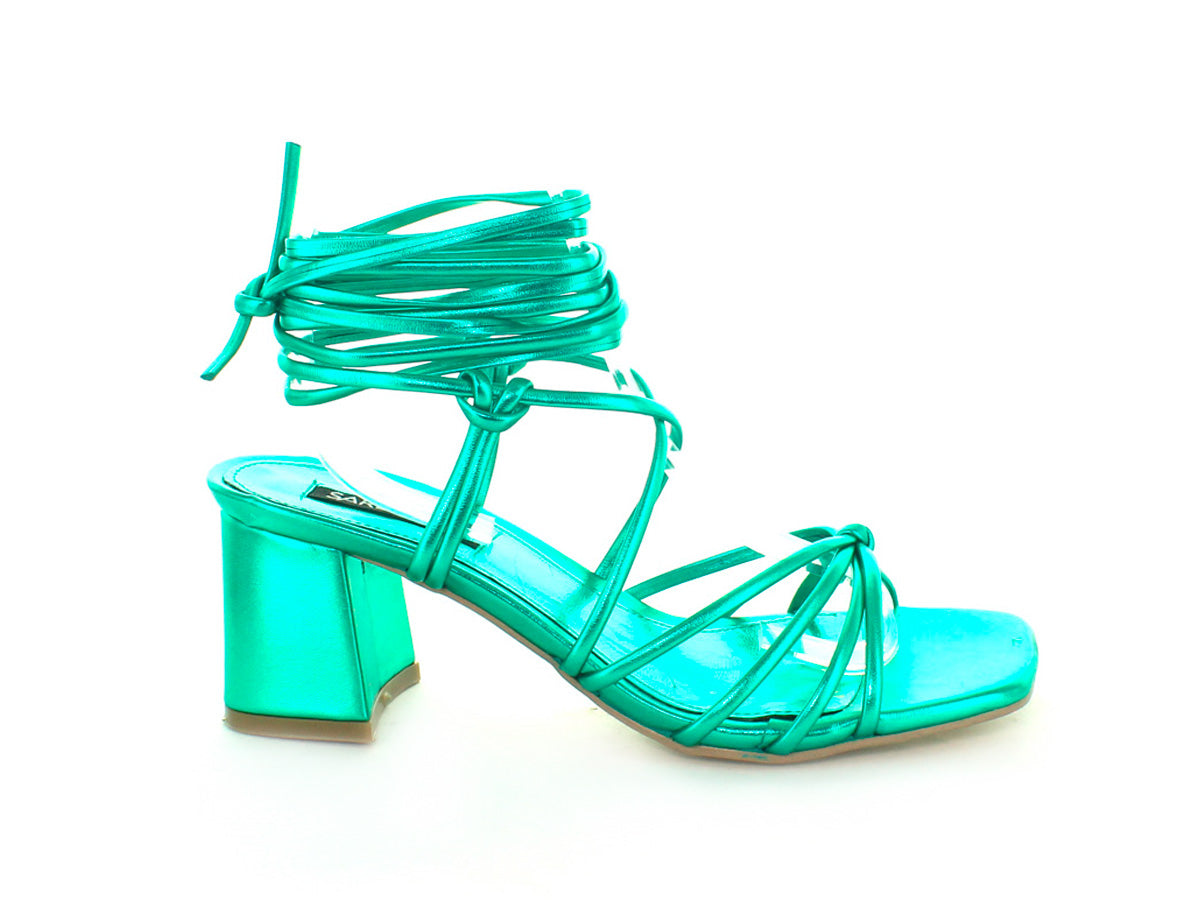 SANDALIA CON TIRAS Y TACÓN GRUESO.